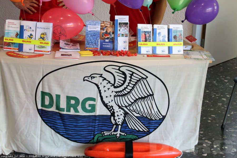 An diesem Tag informierten wir an unserem Informationsstand über unser aktuelles Schwimmangebot. Mit Süßigkeiten, Luftballons und Sonnenblenden wurden die Kinder bestens für diesen Sommertag versorgt. Die Eltern erhielten neben den Süßigkeiten natürlich noch das entsprechende Informationsmaterial zu unserer Ortsgruppe und der DLRG.