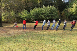 Ein weiterer Bestandteil des Lehrgangs war die Festigung des Zusammenhalts im Team der Helfer. Hierzu hatte sich die DLRG Lütgendortmund zusammen mit einem Erlebnispädagogen ein Spiel vorbereitet. Ziel dieses Spiels, war die gemeinsame Erfüllung von Aufgaben welche nur im Team bewältigt werden konnten.